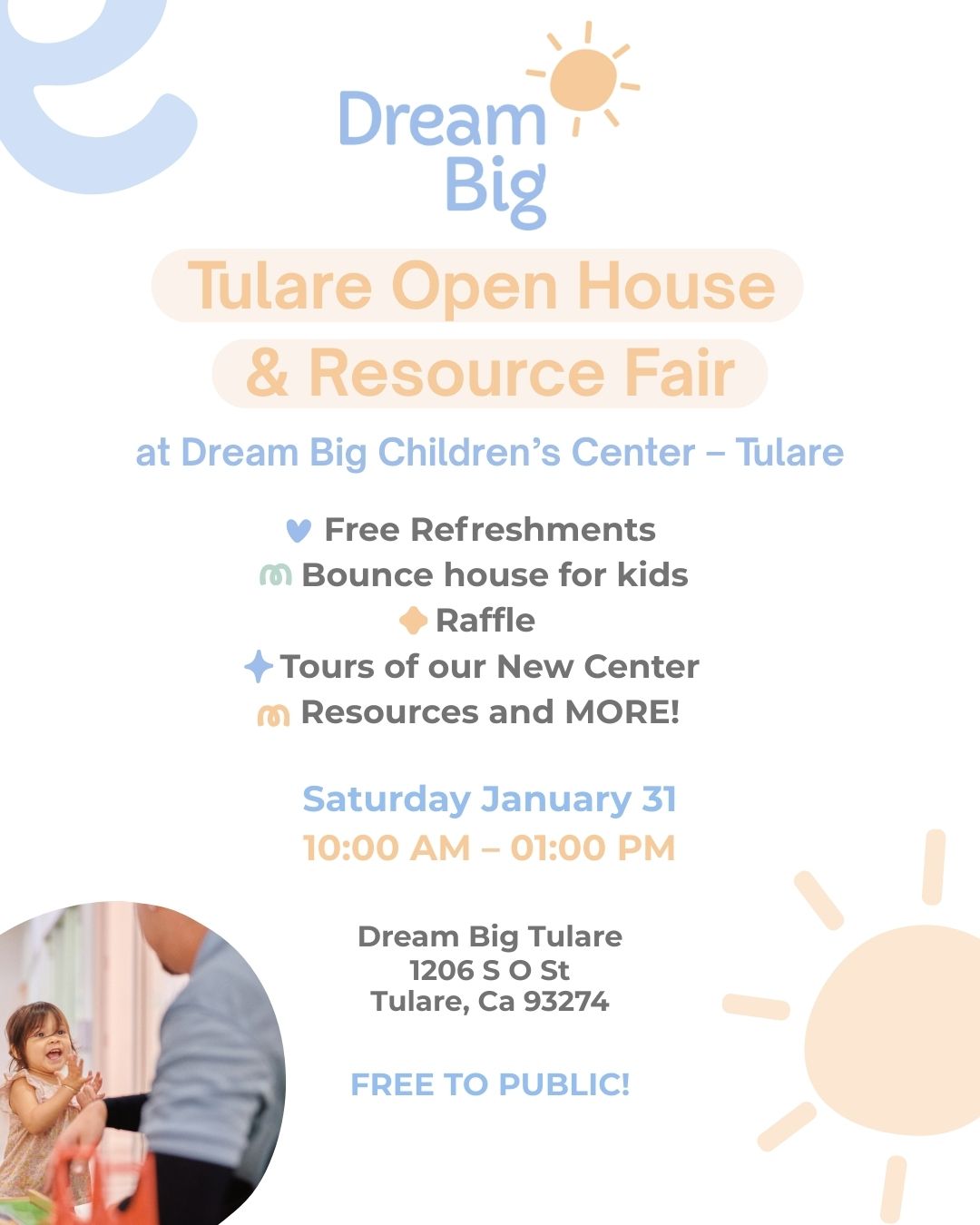 Join us as we celebrate the opening of Dream Big Children’s Center – Tulare with a special community event!