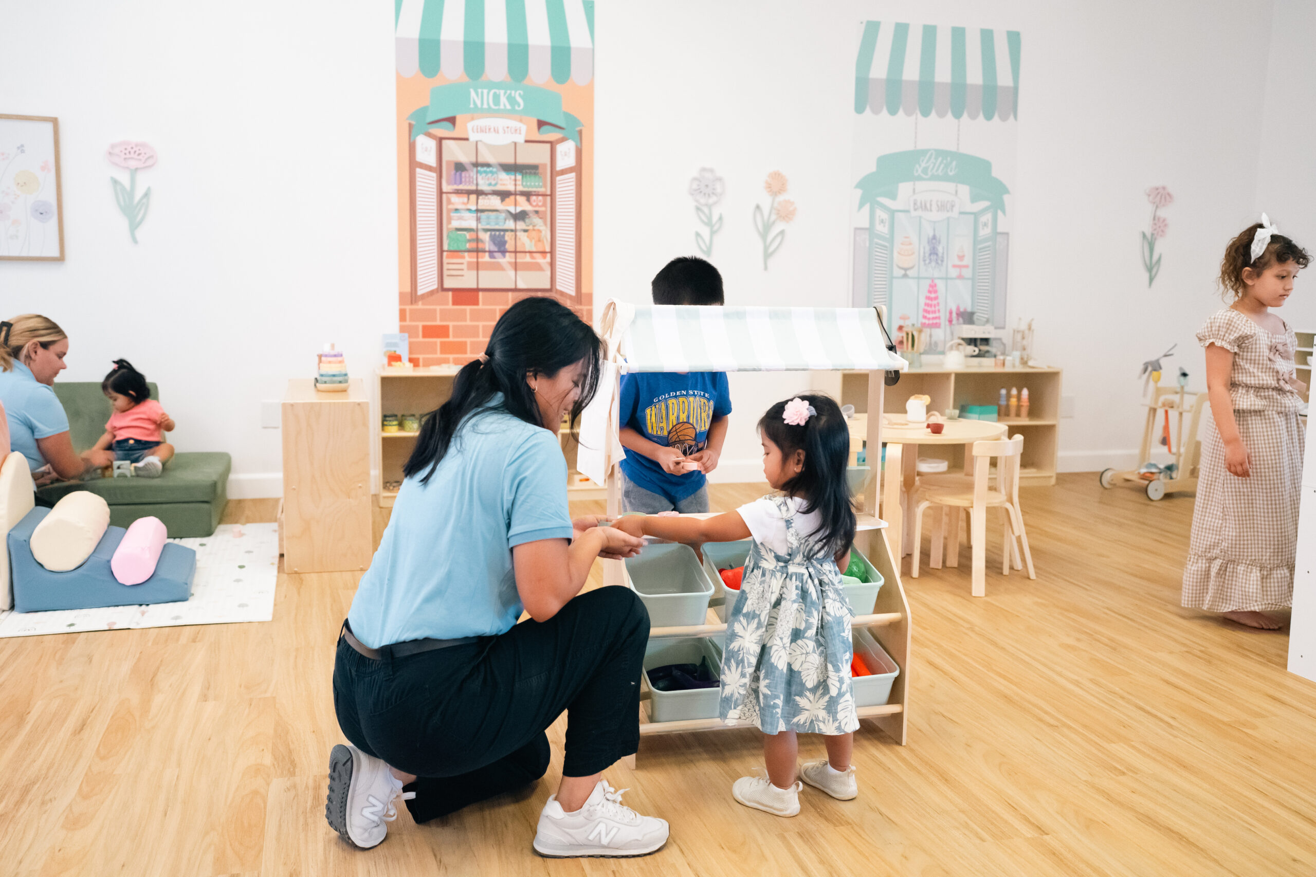 Play-based arrival sets the tone. Kids enjoy focused learning, snack breaks, and circle time. Hands-on activities and guided lessons carry them through to day’s end.